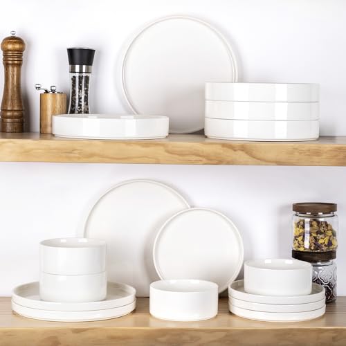 - 【OVEN & DISHWASHER SAFE】 Burning at 2300 °F for 17 hours enhances its fracture resistance and makes it more durable. The plate set is suitable for use in microwaves, ovens, dishwashers, and refrigerators. We use sturdy materials to provide you with robust and long-lasting ceramic bowls. Their carefully designed shape allows for easy stacking and storage in your cupboard or shelves, making your food look even more delectable.