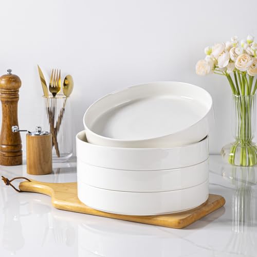 - 【ELEGANT AND Four COLOLS DESIGN】 This collection leads the dining trend with its expressive colors and finishes. The striking reactive glaze and rich, vivid tones not only soothe the senses but also enhance your dining experience. They are very big, so you have plenty of room for all the food you want to put on it. Their bottoms are flat to allow food to be easily cut in the bottom of the bowl with the dinner knife,this is great for making sure that nothing is spilled off the edge.
