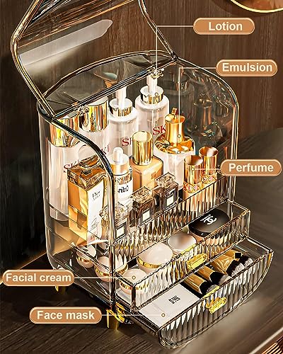LERFOT - Makeup Organizer, Large Capacity Cosmetics Makeup Organizer for Vanity, Dustproof Waterproof Cosmetics Display Case with Drawers for Skincare, Lipstick, Brushes and Jewelry (Large)