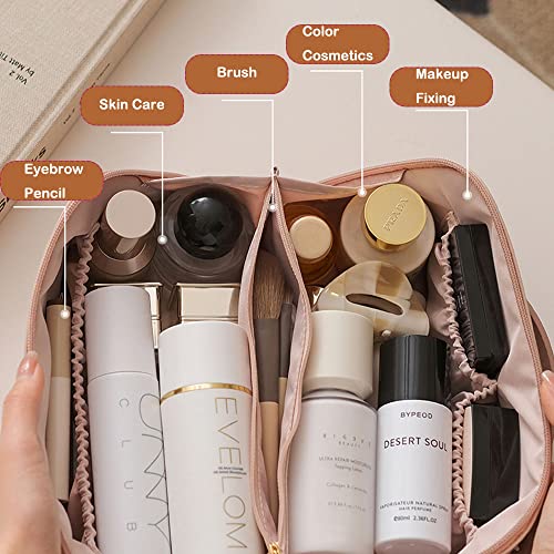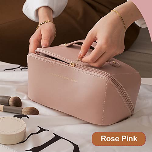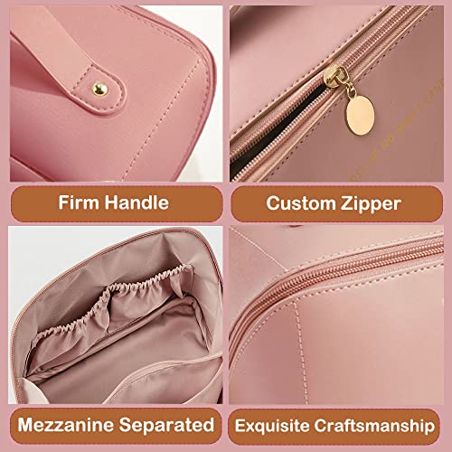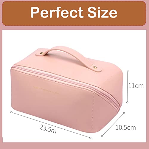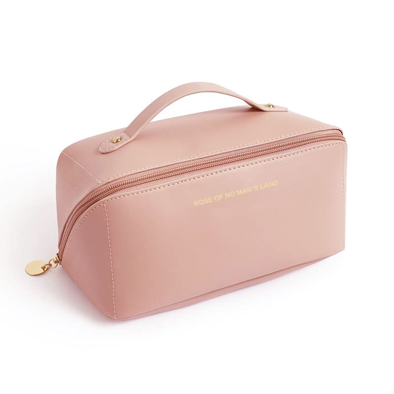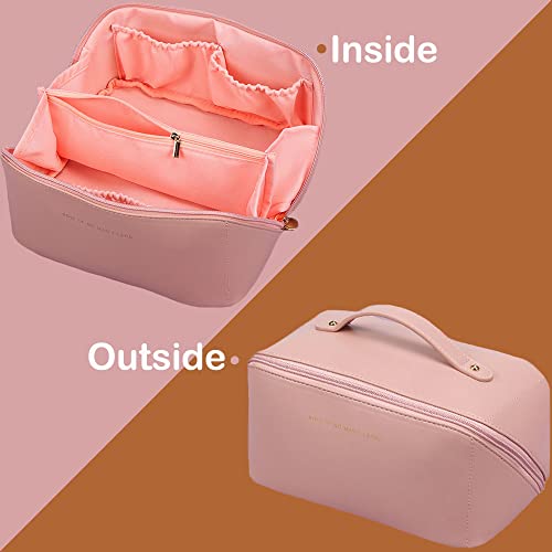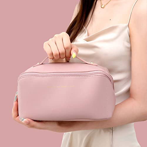 LETGO - LETGO Large Capacity Travel Cosmetic Bag, Large Travel Toiletry Bag Portable PU Leather Makeup Bag with Handle and Divider Waterproof Multifunctional Storage Makeup Bag for Women and Girls (PINK A)