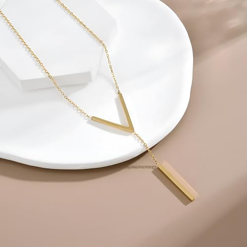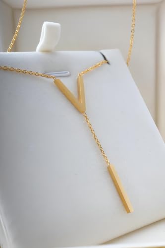 Generic - Letter Chain - Elegant v pendant gold necklace for women fashion stainless steel clavicle jewelry durable design trendy look now