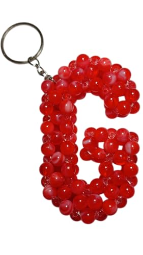 Generic - ميدالية مفاتيح حرف G مصنوعة من الخرز الأحمر اللامع، إكسسوار يدوي أنيق للمفاتيح والحقائب والهدايا الشخصية