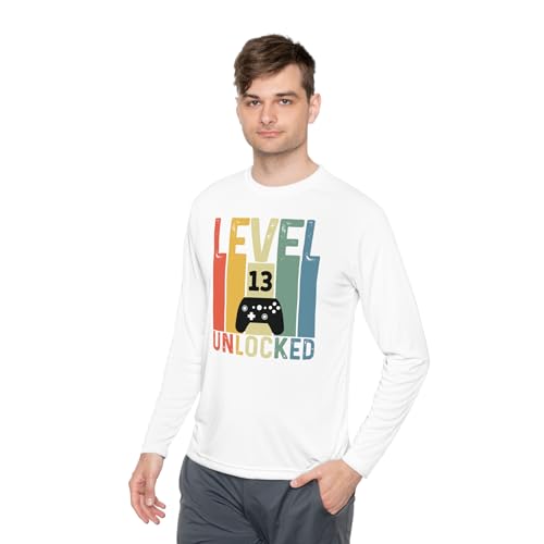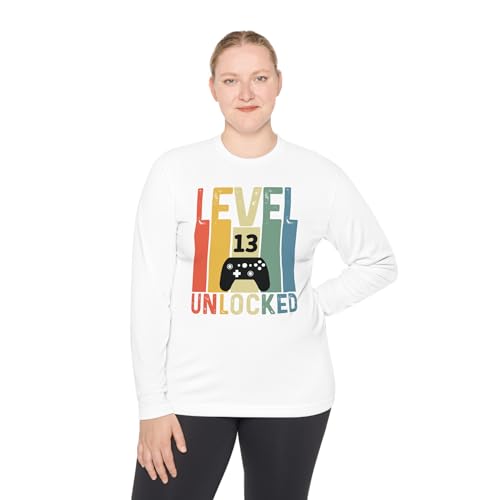 Generic - Level 13 Unlocked 13th Birthday Long Sleeve Unisex T-Shirt تيشرت ابيض مطبوع للرجال والنساء