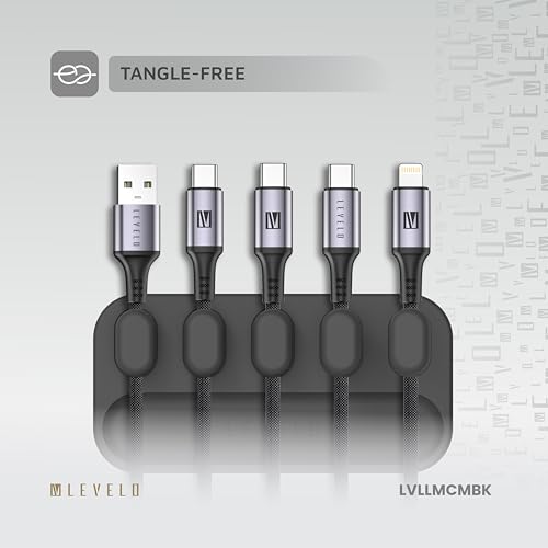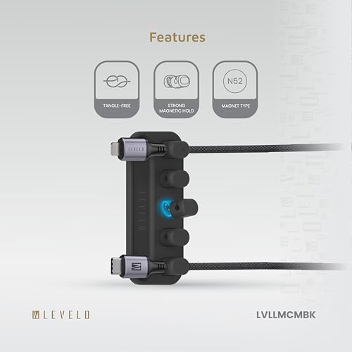 LEVELO - Levelo Livia Detachable Magnetic Cable Management, Tangle-Free, 5 Magnetic Heads, Lightweight, Easy to Install, Within 4mm Diamete Cable Compatibility (Black)