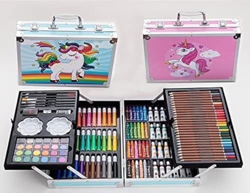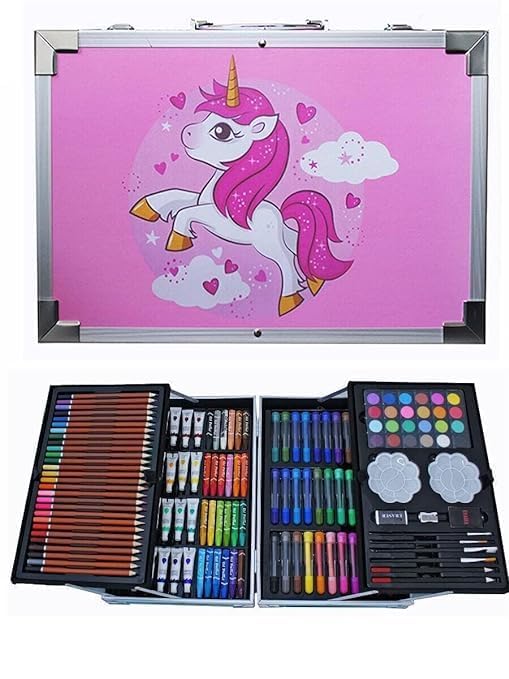 - الرسم والتلوين وتصميم سكيتشات: تتضمن المجموعة 28 لونًا خشبيًا و24 لونًا مائيًا و33 قلم ماركر و24 كيك بألوان مائية و24 قلم رصاص و24 لون زيت باستيل و4 فرش بشعيرات و2 × باليت ألوان بلاستيك و2 × أستيكة و1 × براية أقلام رصاص.