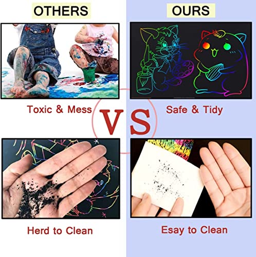 - Safety for Children's: We pay attention to quality and children's health, Our Cool Scratch craft notebook boards are made from non-toxic,no toxic powder and odorless materials,so kids can create colorful, no-fail designs safely.