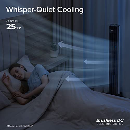 Levoit - LEVOIT Tower Fan for Bedroom, 26ft/s Velocity 28dB Cooling Fan, Bladeless and 90° Oscillating Fan with 5 Speeds, 4 Modes, Standing Fan for Home, Black, Classic 42'