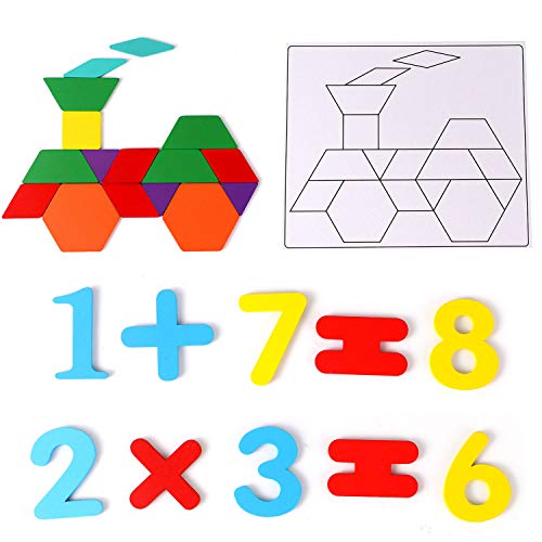 - Super value: the Lewo shape block set includes 170 blocks of various geometric shapes and colors, 17 digital calculating blocks, 15 double pattern cards and a plastic transport box.
