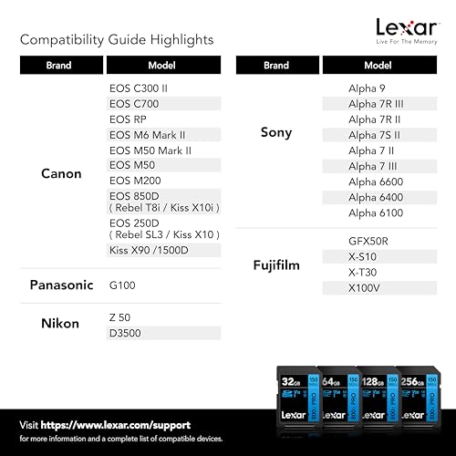 Lexar - Lexar 128GB High-Performance 800x PRO SDXC UHS-I Memory Card, C10, U3, V30, 4K UHD Video, Up to 150MB/s Read, for Point-and-Shoot & Mid-Range DSLR Cameras, HD Camcorders (LSD0800P128G-BNNNU)