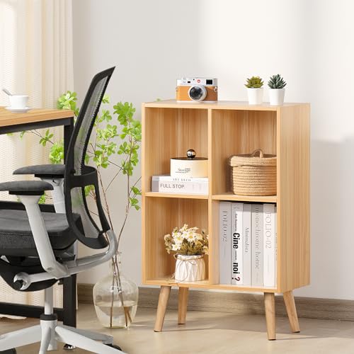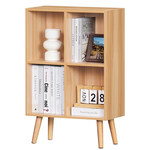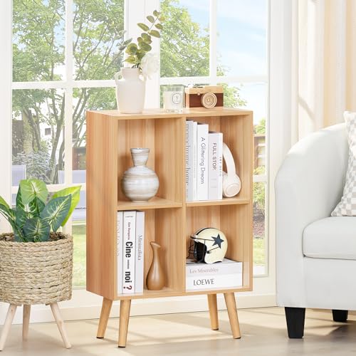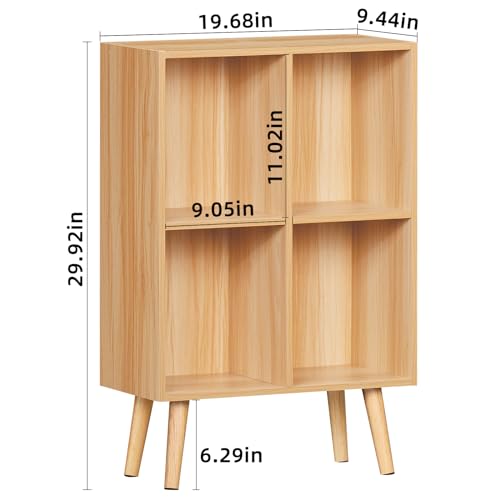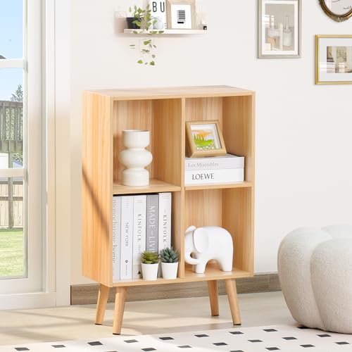 LEYAOYAO - LEYAOYAO 4 Cube Bookshelf, 2-Tier Bookcase with Legs, Natural Kids Book Shelf Cute Storage Organizer, Free Standing Open Toy Shelves Modern Bookshelves,Wood Display Bookcases for Bedroom,Living Room