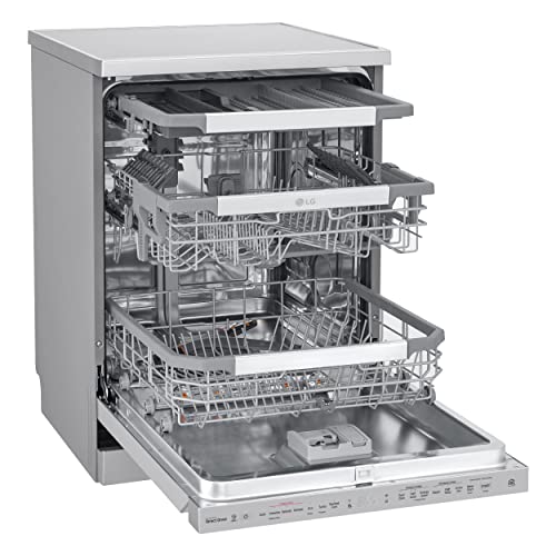 LG - غسالة صحون سعة 14 ال جي ثينك من ال جي، تحكم علوي كواد ووش وارو ستيم، فضي، DFB325HS