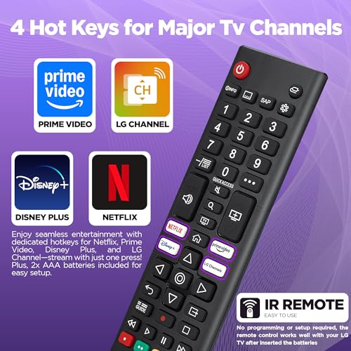 - 🎯 Easy Access & Smart Features – This tv remote includes shortcut buttons for Netflix, Prime Video, and Disney+. A lg universal remote control for tv that also works as a lg remote control for smart tv and universal tv remote lg remote control solution.