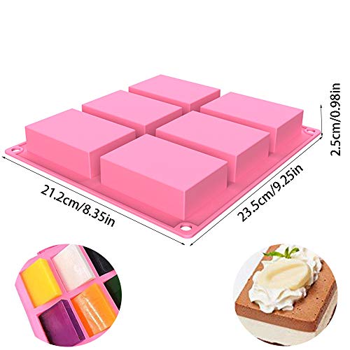 Lhbfcy - 6 قوالب ال اتش بي اف سي واي مجوفة مربعة من السيليكون لصناعة ذاتية يدوية للصابون، قوالب للخبز، قوالب في صينية صناعة مكعبات الثلج، ممتازة الجودة، قوالب من الراتنج للصناعة الحرفية والكيك