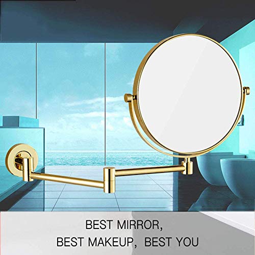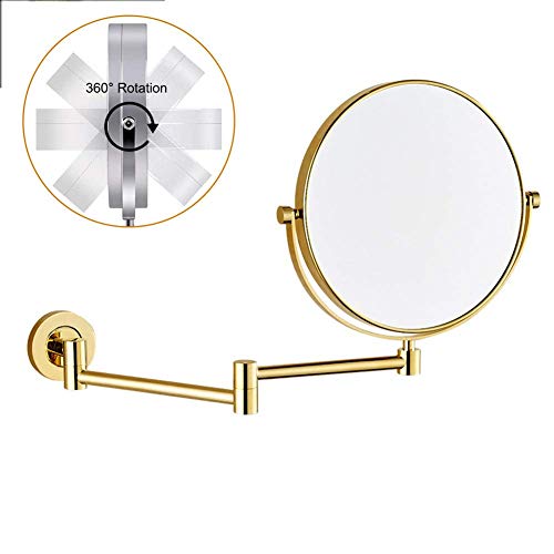 Li-decorate - مراية حمام من لي ديكوريت، مراية حمام مكبرة تثبت على الحائط للمكياج، قابلة للتمديد على الجانبين، دوران 360 درجة، من الفولاذ المقاوم للصدأ، 20.32 سم (اللون: ذهبي