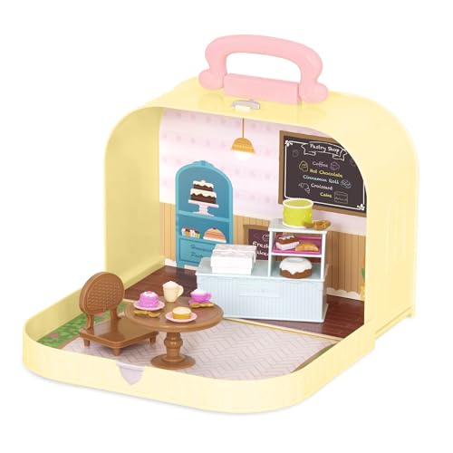 - Playset To-Go: Travel suitcase with pastry shop playset inside for Li'l Woodzeez.