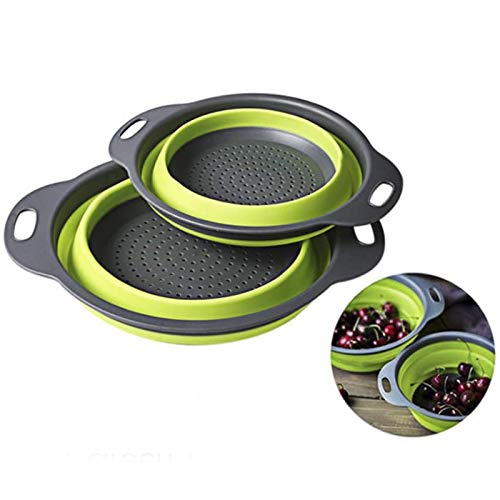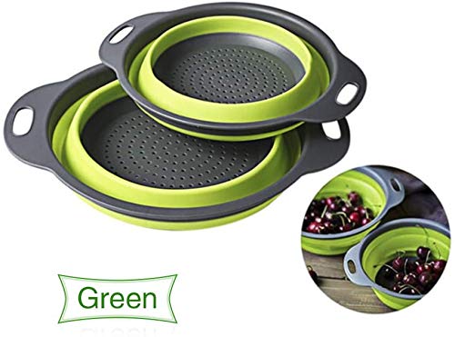 LIANGZHILIAN - Kitchen Collapsible Colander Set with Extendable Handles Over The Sink - Silicone Folding Food Basket Strainers for Draining Pasta, Vegetable, Fruit Green