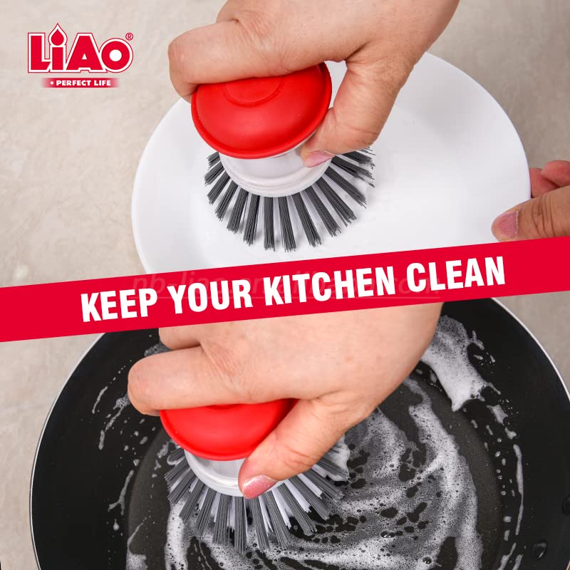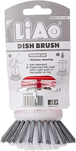 LIAO - فرشاة أطباق دائرية مع موزع للصابون السائل لغسل الأطباق والأواني والحوض بشعيرات سيزال مبتكرة للتنظيف المنزلي من الحديد الزهر ولتنظيف الأواني والمقالي والخضروات من لياو - D130002