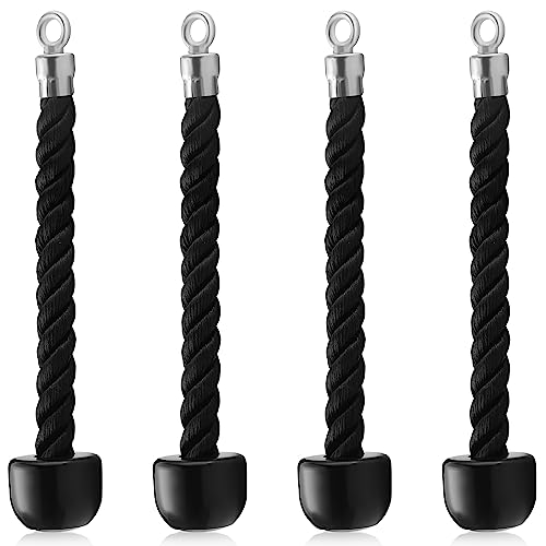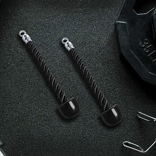 Libima - ليبيما 4 قطع من حبل العضلة ذات الرأسين ثلاثية الرؤوس مرفق مع مقبض واحد سحب لاسفل شديد التحمل لصالة الالعاب الرياضية معدات تمارين القوة لماكينات الكابلات والبكرة للتمارين المنزلية نايلون ومطاط أسود