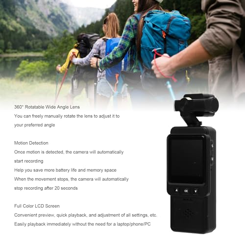 - عدسة قابلة للدوران 360 درجة: يمكنك ضبط العدسة على الزاوية المفضلة لديك، مريحة ومرنة، مما يضمن لك عدم لحظة سواء كنت تسجل الأنشطة الخارجية أو البيئات المحيطة.