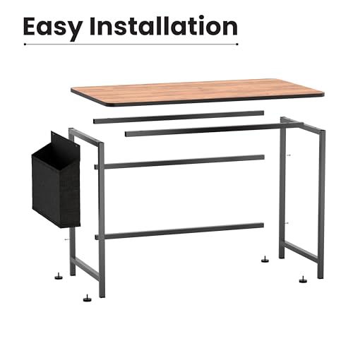 - [Sturdy Design Desk]: The small vanity desk is made of premium metal frame and E1 particle board to ensure stronger and better load-bearing. This writing desk can hold up to 100 kg/220 lbs. 4 adjustable foot can keep the desk stable on uneven ground and protect the floor from scratches.