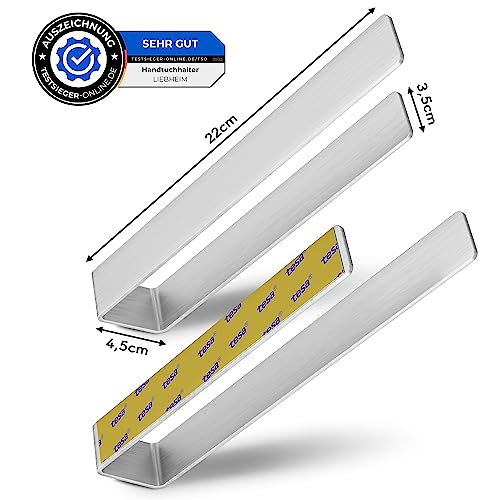 LIEBHEIM - Tesa Towel Rail without Drilling - Mounting Tape & Extra Large Adhesive Surface - Aluminium Towel Rail for Gluing - Light Weight 100 g (Brushed Silver, 22)