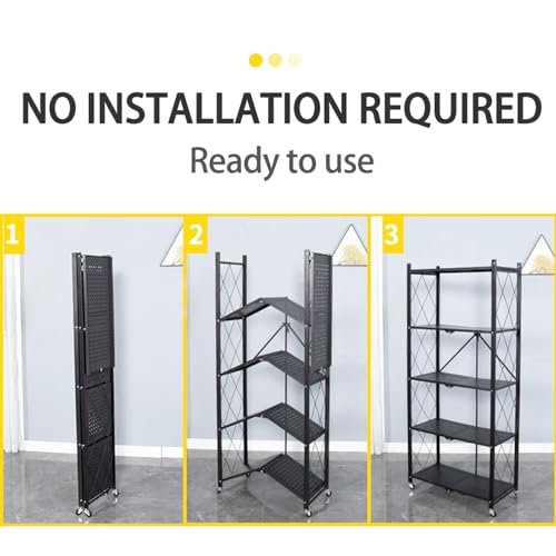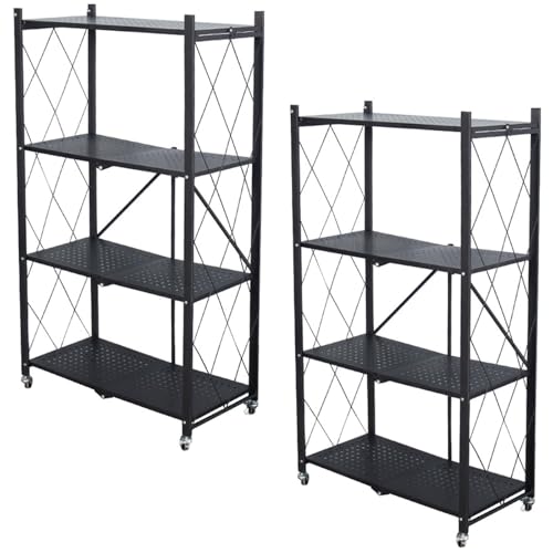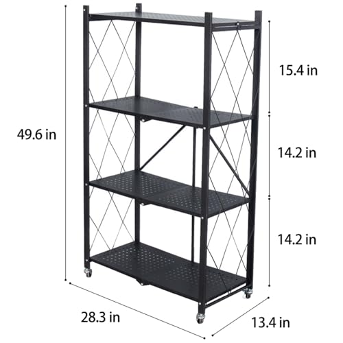 Life Hacks - ارفف قابلة للطي من 4 طبقات للتخزين من لايف هاكس، لا تحتاج الى تجميع، وحدة رفوف قابلة للطي مع عجلات، رفوف تخزين معدنية للمطبخ والمراب والمنزل