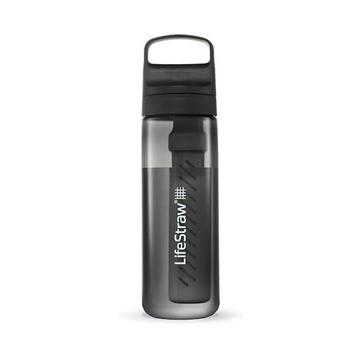 LifeStraw - زجاجة مياه من سلسلة جو مزودة بفلتر مياه خالية من البيسفينول أ للسفر والاستخدام اليومي وأزالة البكتيريا والطفيليات والبلاستيك الدقيق لتحسين المذاق من لايف سترو، لون أسود (Nordic Noir)، سعة 650 مل