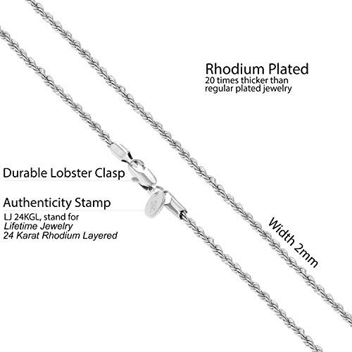 LIFETIME JEWELRY - لايف تايم جيويلري سلسلة حبل ذهبية 2 ملم للرجال والنساء مطلية بالذهب الحقيقي عيار 24 قيراط، قلادة ذهبية بقطع الماس للنساء والرجال من 14 الى 36 انش