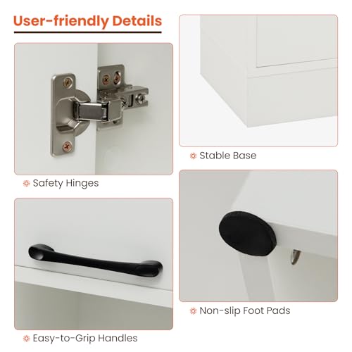 - BEAUTIFUL DOOR This bathroom cabinet is equipped with beautiful doors, which effectively block the ingress of dust and moisture, protect interior items from pollution, and make your bathroom more tidy and beautiful.