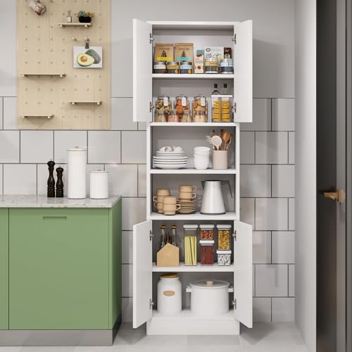 LIFEZEAL - LIFEZEAL Bathroom Cabinet, 190 cm High, Space-Saving Tall Cabinet, Multi-Purpose Cabinet, Kitchen Cabinet with 2 Open Shelves & 4 Doors, Cabinet for Bathroom, Kitchen, Living Room (White)