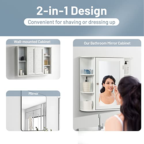 - ✨【2-in-1 Design】This bathroom wall cabinet with mirror allows you to store things, as well as dress up, shave, killing two birds with one stone.