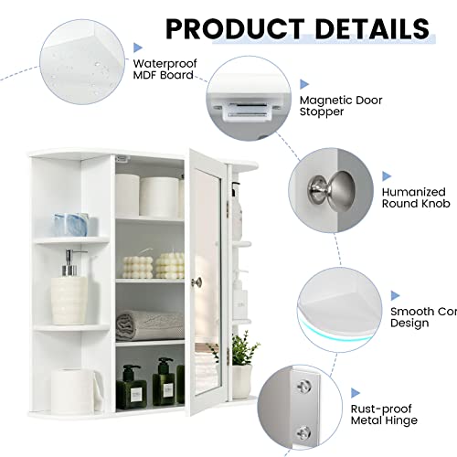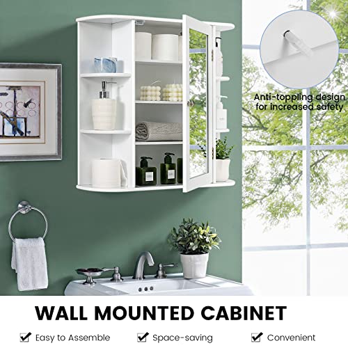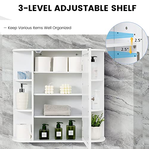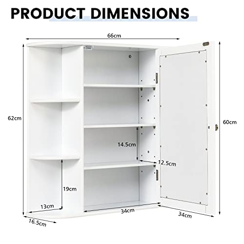LIFEZEAL - LIFEZEAL Bathroom Cabinet with Mirror, MDF Wall Mounted Toilet Storage Cabinet, Height Adjustable Shelves, Toilet Storage Cabinet 66 x 16.5 x 62 cm (White)