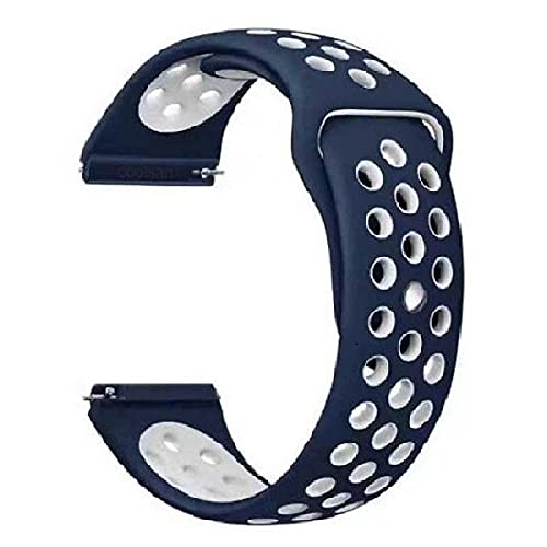 Liger - شريط ساعة سيليكون من لايجر متوافق مع ساعات قياس 22ملم وسامسونج جير أس3 (كلاسيك ,فرونتير) 46 ملم(آر800,آر805) و أمازفت (بيس,بيس2) هواوي (واتش جي تي,واتش2كلاسيك) لون أزرق أبيض، للجنسين