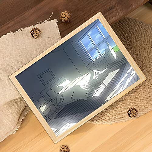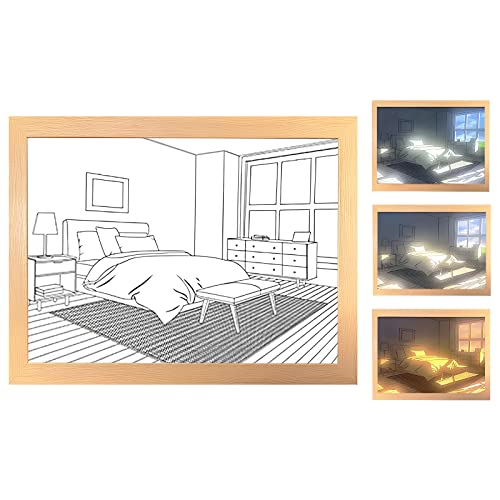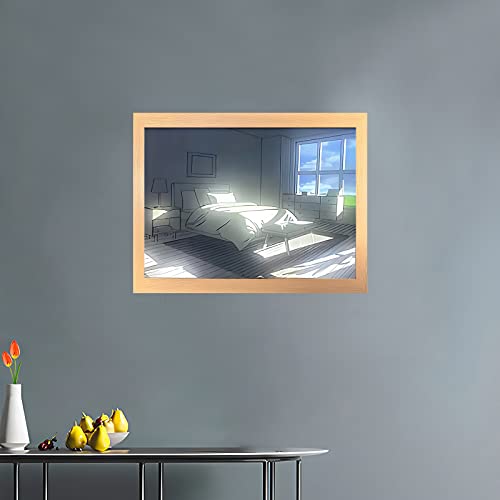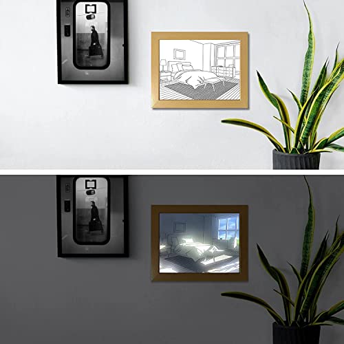 LFBTLN - لوحة فنية مضيئة ببرواز صور وإضاءة ليد أنيقة ومتوهجة خلف البرواز لجدار غرفة النوم وغرفة المعيشة وديكور المنزل، شباك، 23 × 17 سم