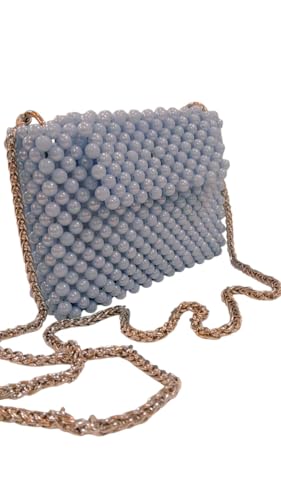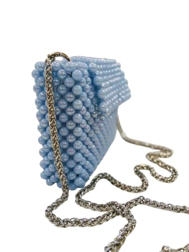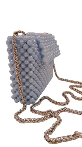 Generic - Light Blue Clutch Pearl Bag for Women with Gold Strap Luxury Wedding Bridal Evening Party Handbag Square Shape