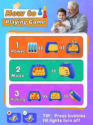 - مسلية ولكن تعليمية: ترقية ألعاب الفقاعات البسيطة القديمة في وقت مبكر، تضيف لعبة فيدجيت التي تنبثق الفقاعات الخاصة بنا إضاءة ليد مبتكرة وصوت لعبة. فقط اضغط على فقاعات الإضاءة بسرعة. سيلعب الأطفال بسهولة مع وحدة التحكم في لعبة الألغاز المنبثقة ويستمتعون بالمرح، بينما سيتم تدريب وتطوير الحس والتركيز والتنسيق بين اليد والعين وذاكرة الدماغ أثناء تحدي السرعة.