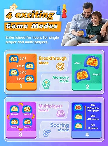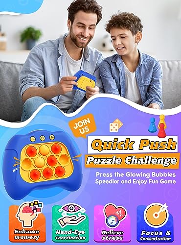 Careenoah - لعبة فقاعات بوب فيدجيت مضيئة، جهاز تشغيل ألعاب فيديو رقمية إلكترونية سريعة الدفع، هدايا عيد ميلاد للأولاد والبنات بعمر 6 و7 و8 و9 و10-12 سنة، لعبة أحجية سريعة التركيز للحفلات العائلية - أزرق