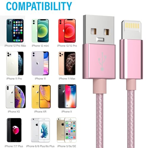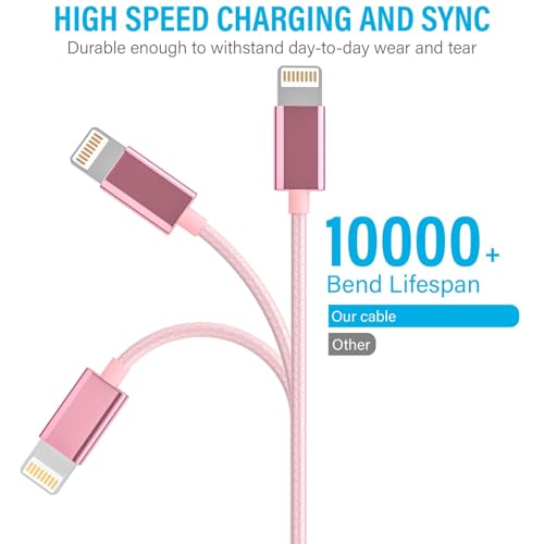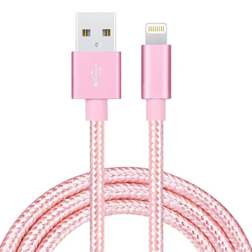 Generic - كابل لايتنينج مضفر بالنايلون بلون ذهبي وردي نقل بيانات عالي السرعة وسلك مزامنة متوافق مع ايفون 14 13 12 11 برو ماكس XS XR