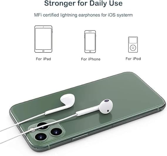 - Lightning Cord Earphone with Microphone and Volume Control Button Compatible with iPhone x S - Max - R - 8 - Plus - 7 - Plug and Play for IOS 10 - 11 - 12 {Live Play without Genuine Bluetooth } Noise Cancelling - White