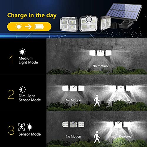 Generic - وحدات اضاءة LED لاسلكية بالطاقة الشمسية للاماكن الخارجية 122 وحدة مع مستشعر حركة و3 رؤوس باضاءة قابلة للتعديل مقاومة للماء بدرجة IP65 بريموت كنترول، أكريلونيتريل بوتادين ستايرين، أبيض