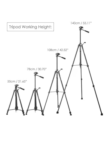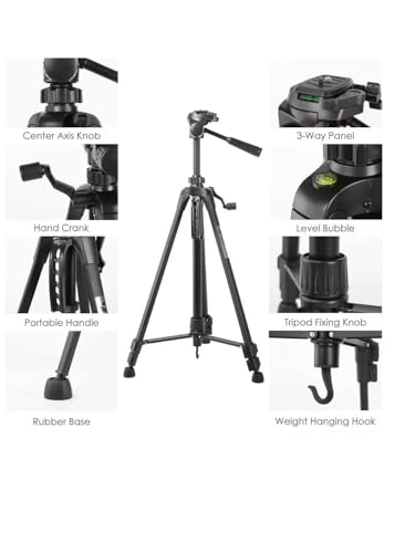 - تصميم احترافي خفيف الوزن: ترايبود احترافي بتصميم مميز وخفيف الوزن مع ارتفاع قابل للتعديل وقفل متعدد المستويات وأرجل مطاطية مستقرة.