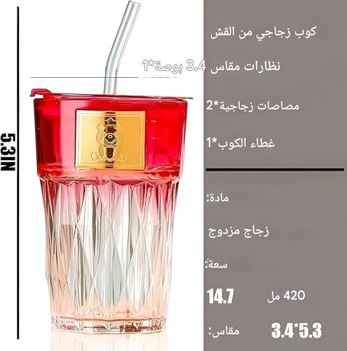 - تم تصميم غطاء الكوب ليكون مقاومًا للتسرب، مما يضمن بقاء مشروباتك محفوظة بأمان أثناء التنقل. بالإضافة إلى ذلك، تأتي مزودة بماصة زجاجية، مما يوفر طريقة مريحة وصديقة للبيئة للاستمتاع بمشروباتك دون انسكابات.
