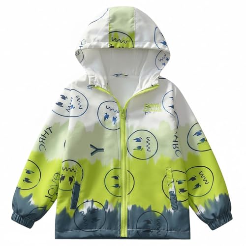 Generic - Lightweight Kids Rain Jacket – Waterproof Windbreaker with Hood, Stylish Printed Design for Rainy Days (WhiteYellow)