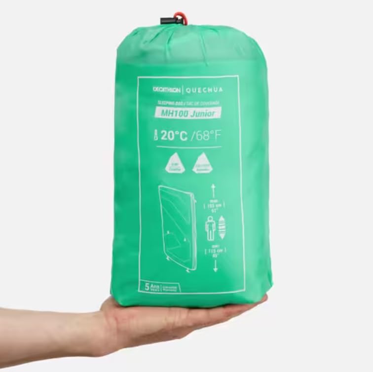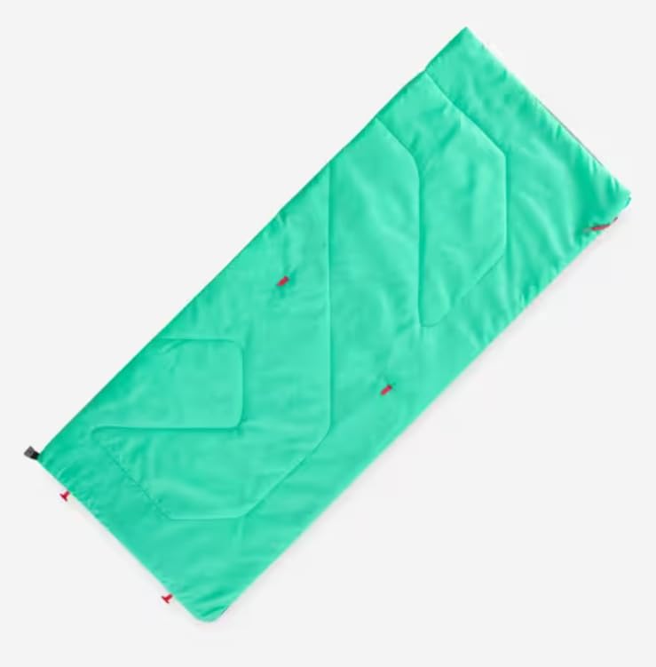 - التصميم: حقيبة نوم جذابة باللون الأخضر الفاتح تتميز بنمط مبطن وتفاصيل أنيقة باللون الأحمر لجاذبية بصرية