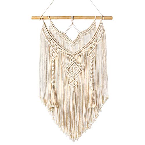 lijunjp - مكرمية ديكور منسوجة للتعليق على الحائط من لوجون جيه بي، نسيج فني للحائط بنمط ريفي بوهيمي عصري، لوحة فنية هندسية جميلة للمنزل، والشقة، وغرفة السكن الجامعي، أبيض
