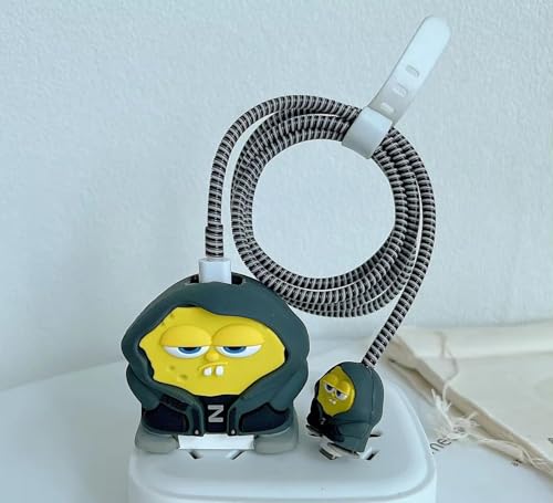 Like Star - Protective Case Cover 4in1 Compatible with Apple 20W/18W iPhone USB-C Power Adapter Charger Protection Case & Wire Saver, 3D Cartoon Character Case 360 Degree Protection Cover(Ghost-Yellow)