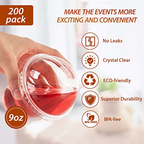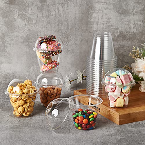 Lilymicky - أكواب بلاستيكية شفافة مع أغطية بنمط قبة، أكواب حلويات كريستالية من البولي إيثيلين تيريفثالات، أكواب حفلات باردة للكب كيك/الآيس كريم/اللاتيه/المشروبات الباردة من ليليميكي، عبوة من 200 قطعة، 255 جم