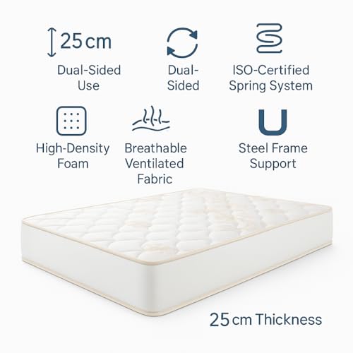 Larouche - Limas 25 cm Dual-Sided Mattress – ISO-Certified Spring System – High-Density Foam – Breathable Ventilated Fabric – Durable Steel Frame – Premium Comfort & Support (190 * 170)