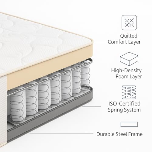 - 🛡️ Reinforced Steel Frame European steel perimeter supports the spring structure and prevents sagging over time.