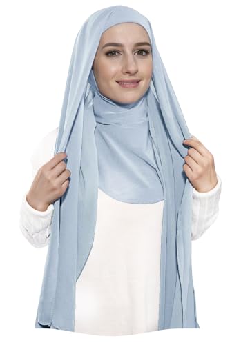 Lina & Lily - Lina & Lily Premium Chiffon Ninja Instant Hijab Scarf Stitched Jersey Cap Neck Cover Full Coverage